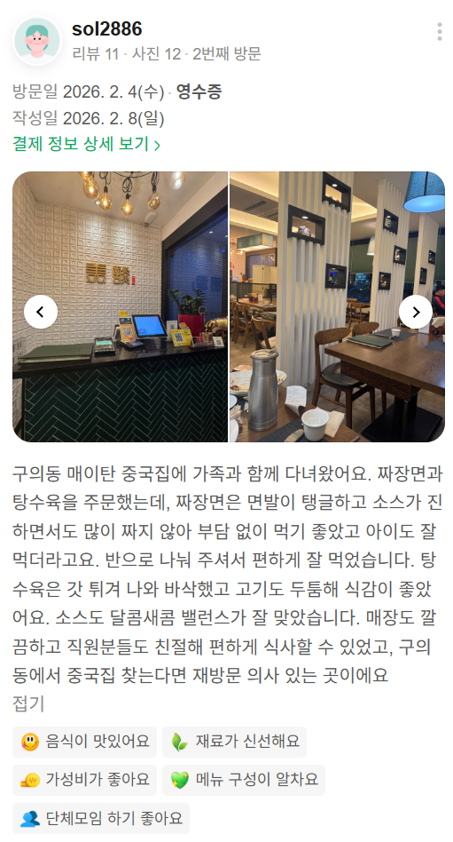 - 리뷰 내용: 핵심키워드 포함